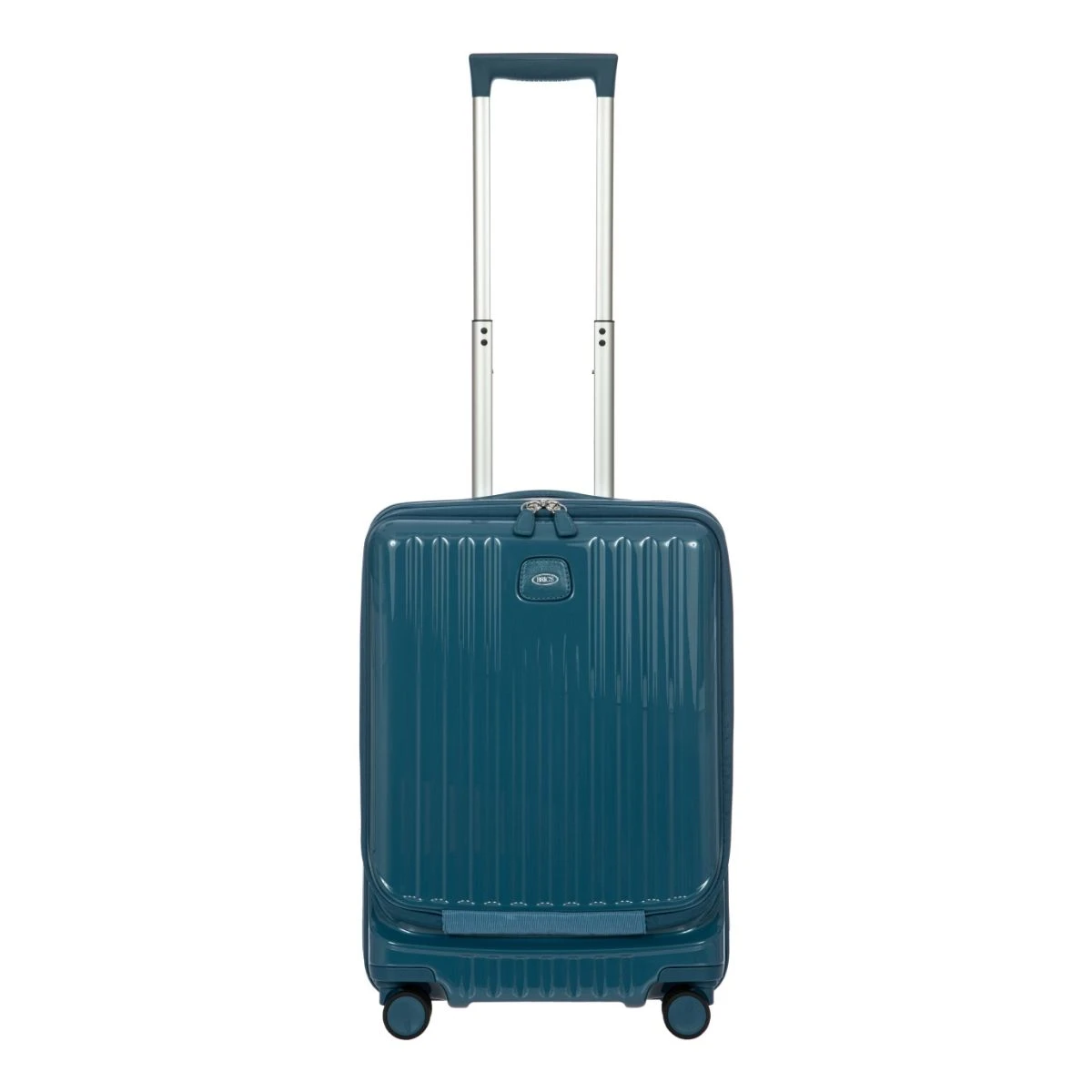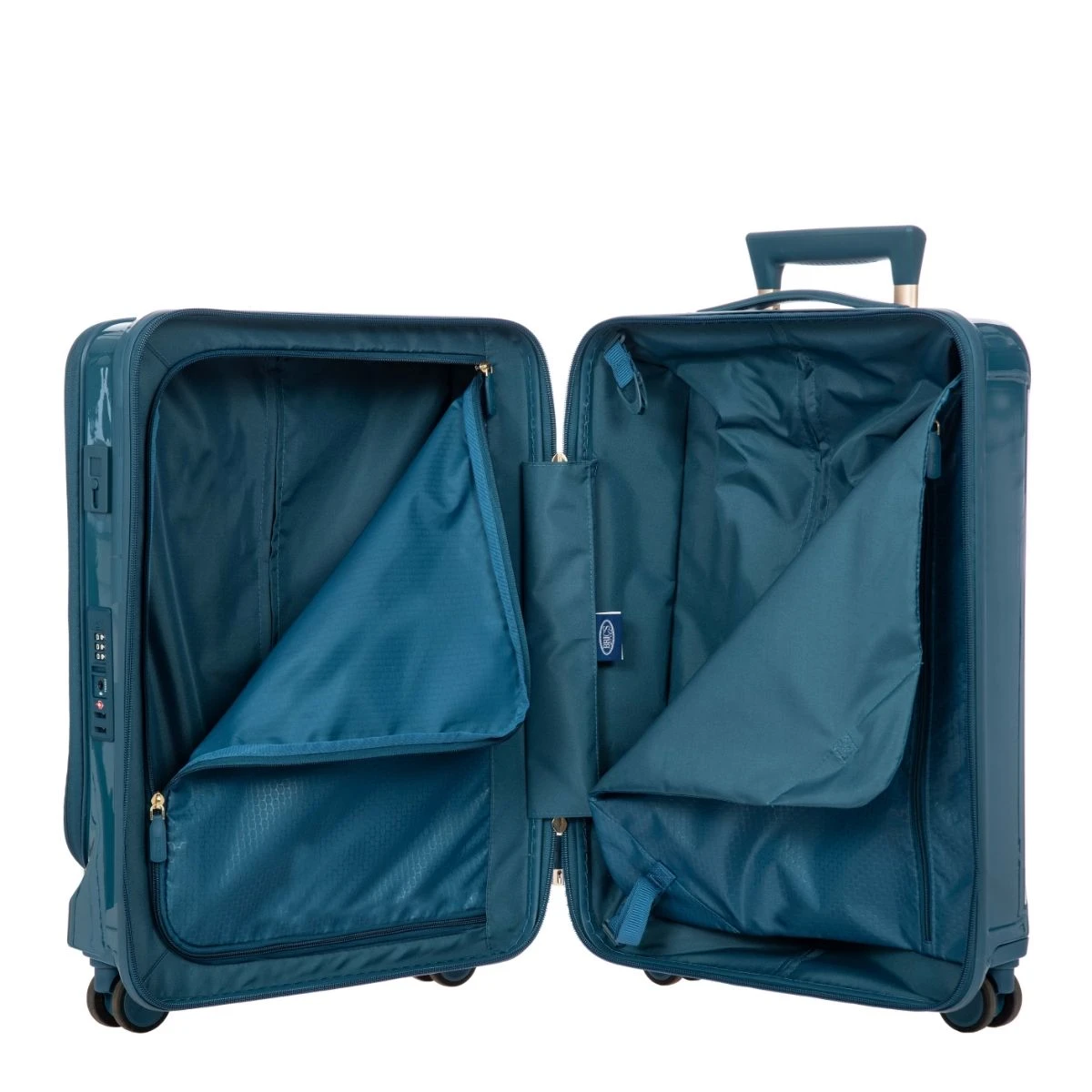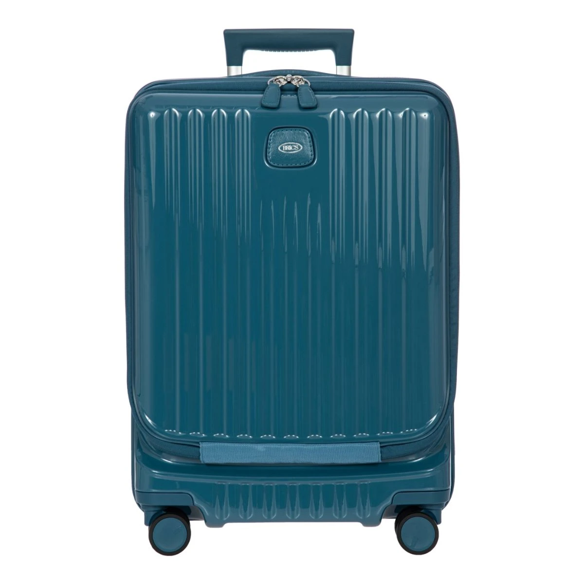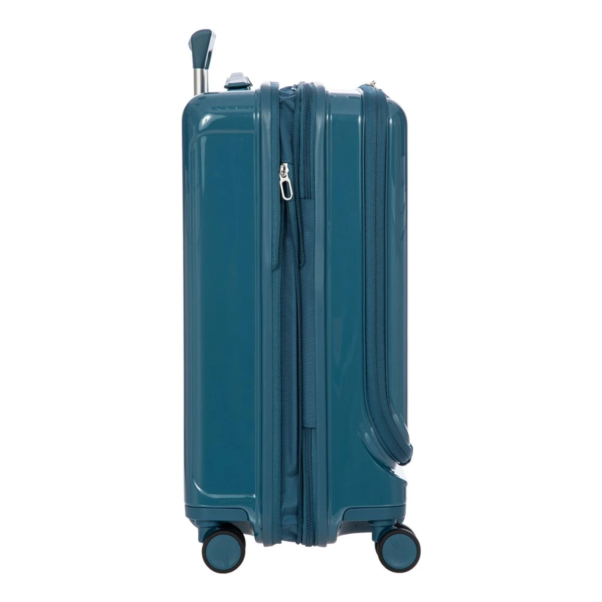 The Positano collection is made from durable recycled polycarbonate. It is flexible and resistant, with a high shine finish. The Positano collection showcases striking color shades. To improve the exclusive look, all the elements feature a single tone finish in a matching color: the handles, the zip, the wheels, the lining inside and, to give the final accent, the leather logo. The style is enhanced by the protective cover featuring the Bric’s logo which is included with each trolley.
