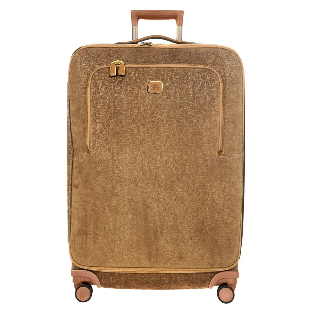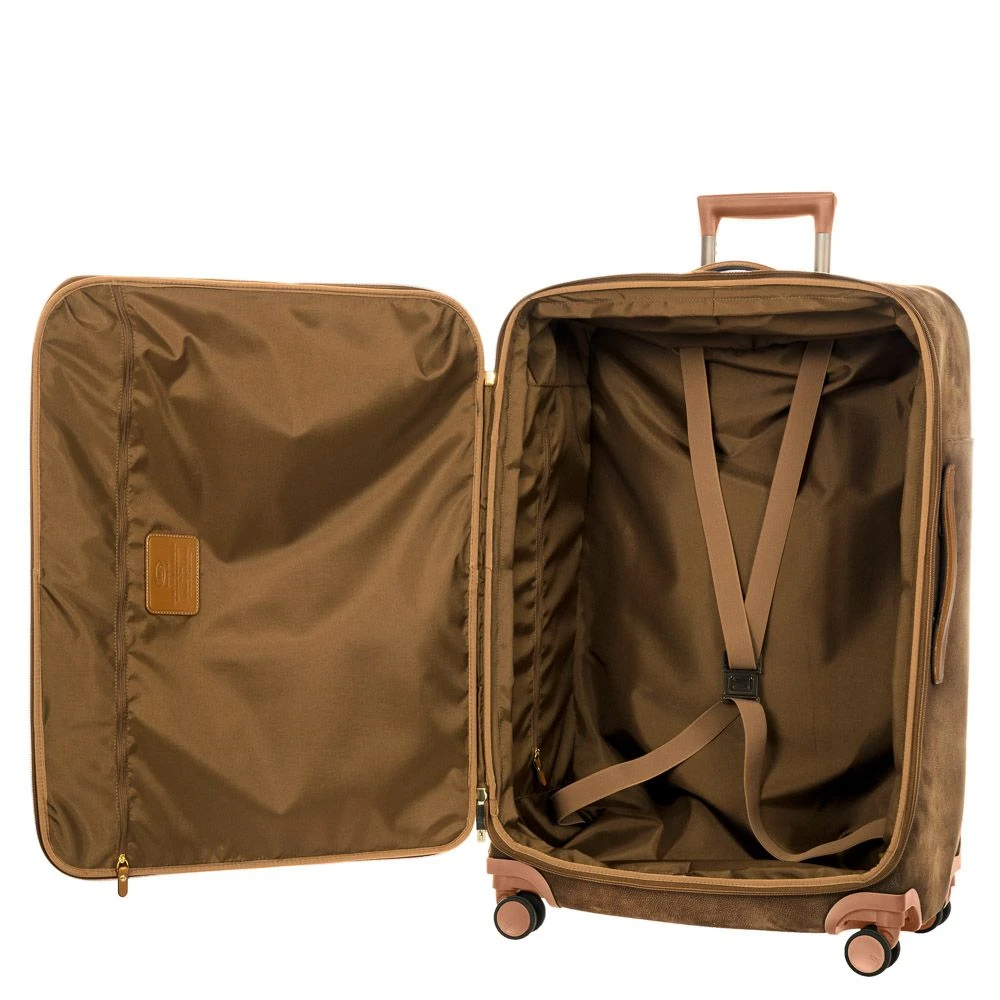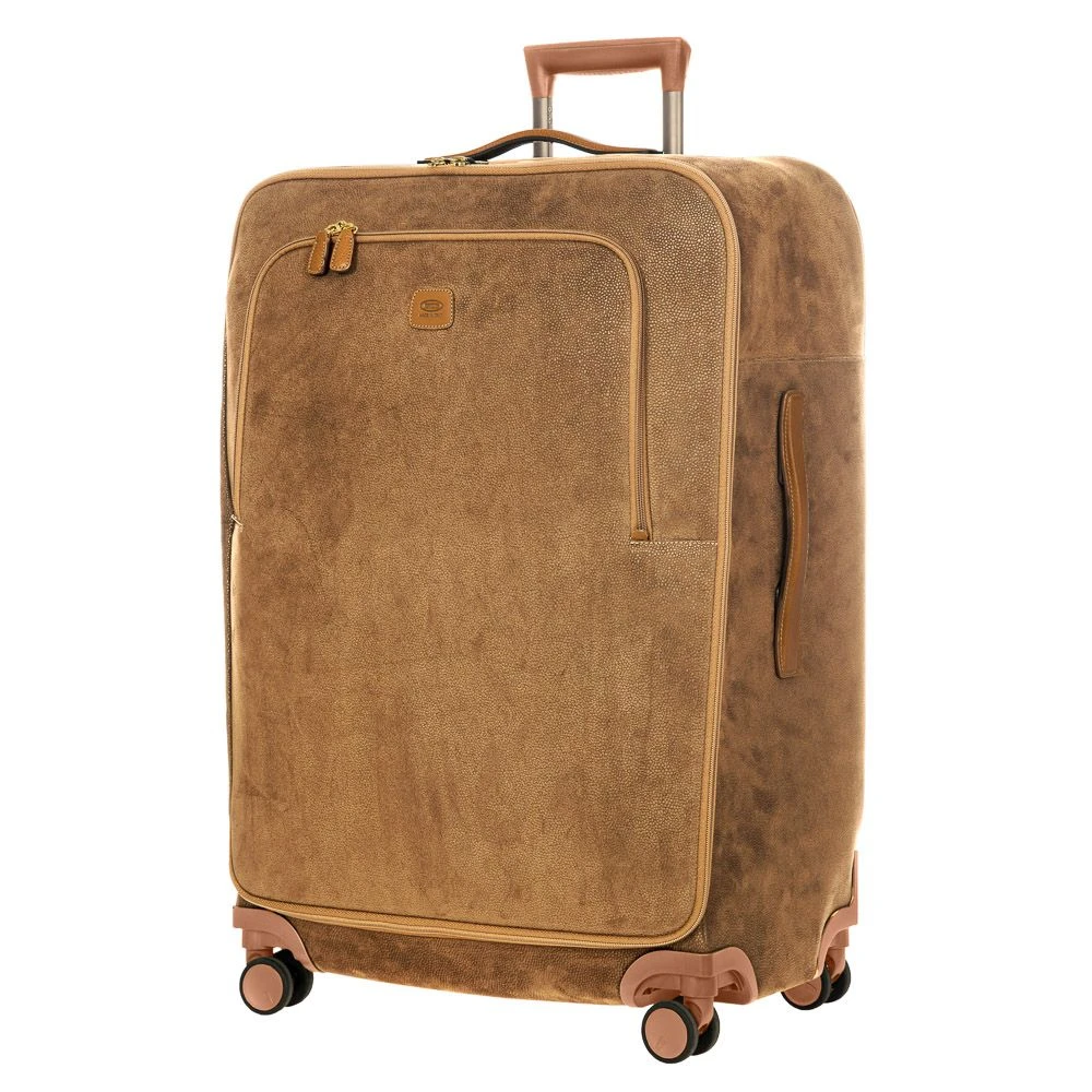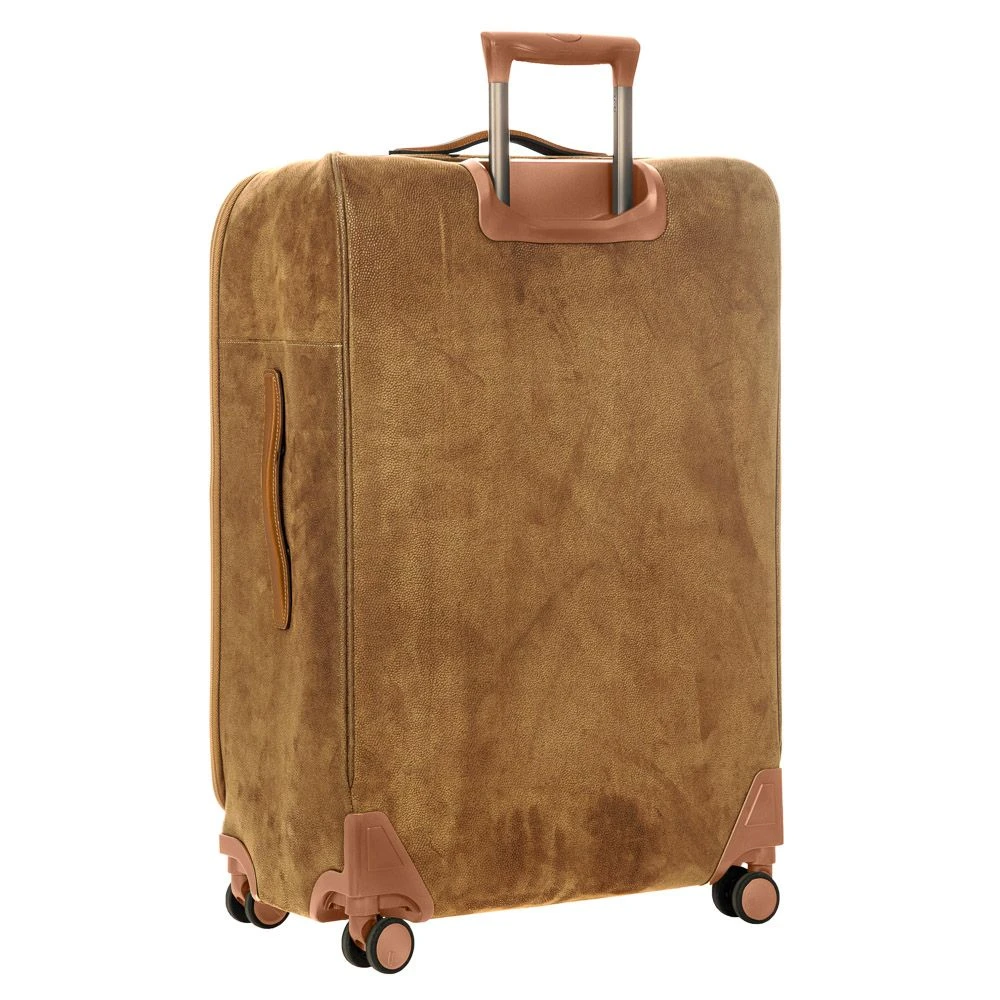 Designed and made in Italy, this medium trolley from the Life Collection is built to last. It’s in Bric’s iconic suede-look material, the waterproof, extra durable result of fine-tuned artisanal production processes. Everyday use will give it a vintage look, making it even more unique. The structure of this trolley ensures stellar performance: the outer fabric has been applied to a self-supporting, crush-resistant structure that’s hard at the sides. This ensures it will stand up to impact and, because it ‘remembers’ its original shape, it won’t warp – no matter what. The inside is lined in fabric that’s on-tone with the outer material. The front zip pocket holds items that are essential to always have to hand. The main compartment of the trolley is opened by a double-slide zip. Integrated TSA lock. The four swivel wheels move quietly and rotate a full 360° for guaranteed manoeuvrability, equipped with ball bearings that create a smooth ride. The wheels are recessed to maximise the capacity of the suitcase. To ensure comfort and ease of use, the retractable handle is made up of robust, sturdy aluminium tubes with intermediate stop positions and an ergonomic grip. Integrated address tag carrier. The exterior is trimmed by carry handles and details in real leather, a distinguishing Bric’s detail.