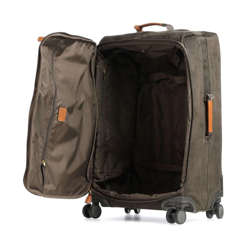 Large trolley from the Life collection in suede-effect synthetic material with leather details.