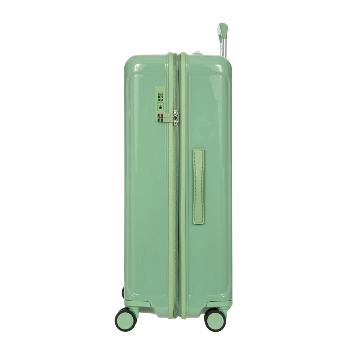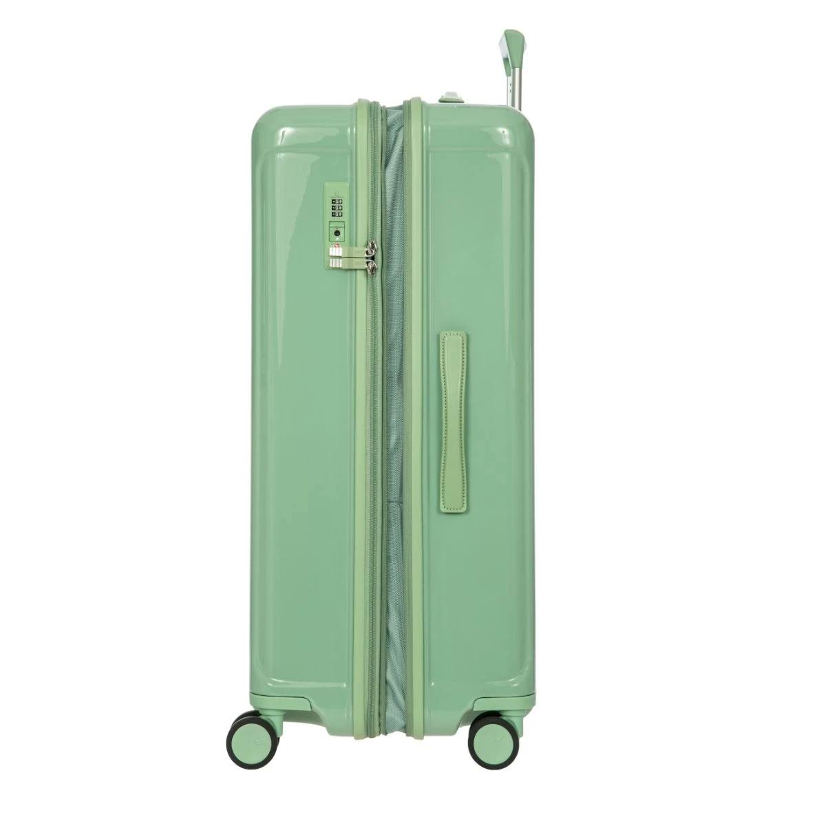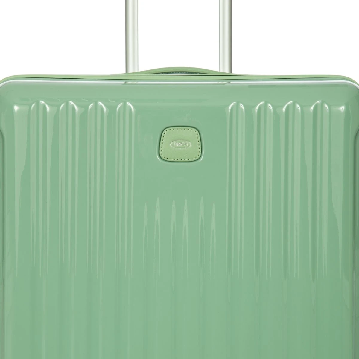 The Positano collection is made from durable recycled polycarbonate. It is flexible and resistant, with a high shine finish. The Positano collection showcases striking color shades. To improve the exclusive look, all the elements feature a single tone finish in a matching color: the handles, the zip, the wheels, the lining inside and, to give the final accent, the leather logo. The style is enhanced by the protective cover featuring the Bric’s logo which is included with each trolley.
