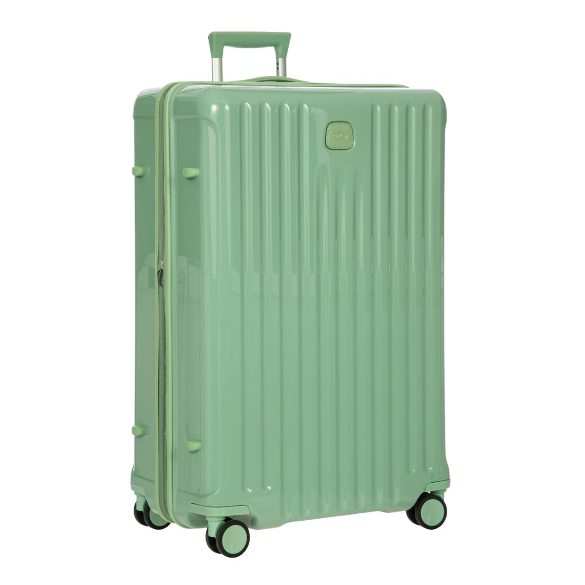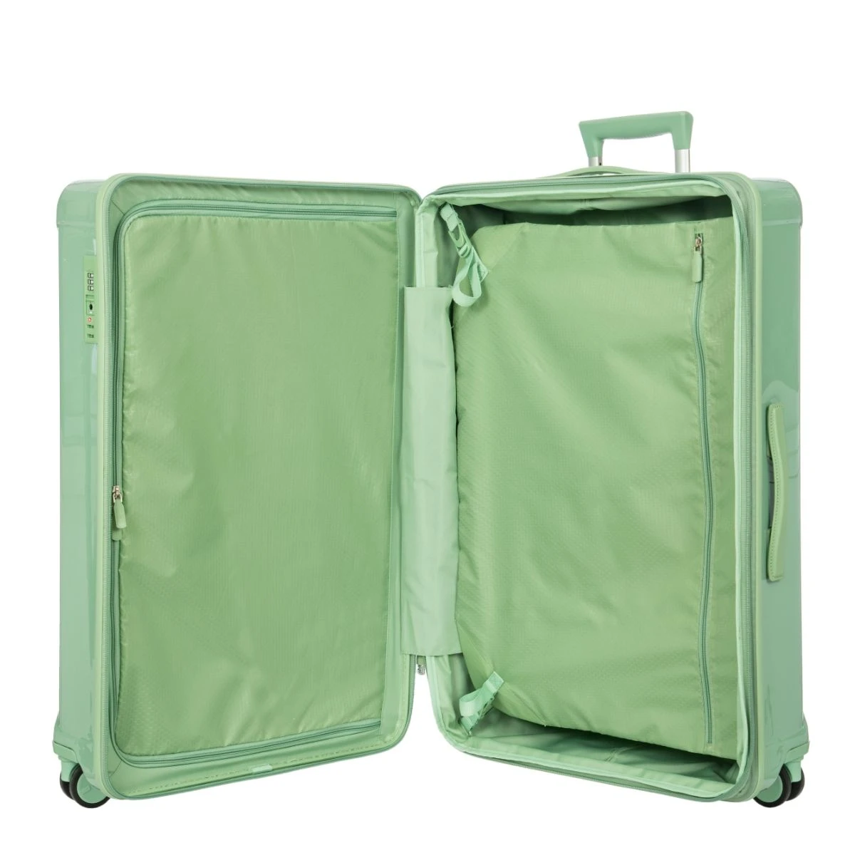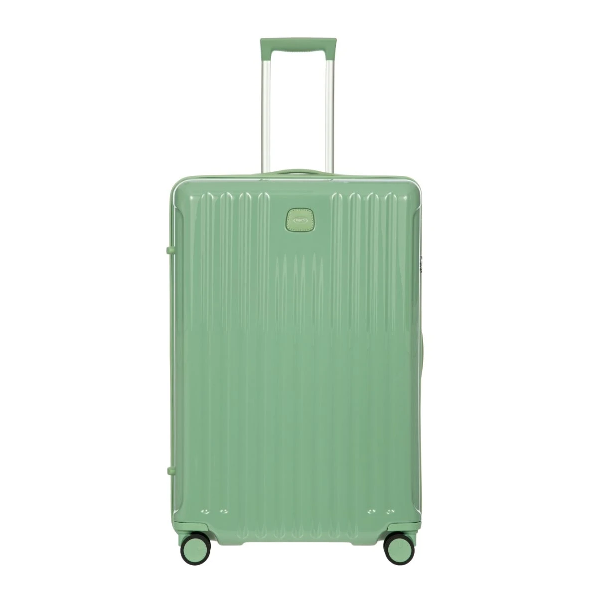 The Positano collection is made from durable recycled polycarbonate. It is flexible and resistant, with a high shine finish. The Positano collection showcases striking color shades. To improve the exclusive look, all the elements feature a single tone finish in a matching color: the handles, the zip, the wheels, the lining inside and, to give the final accent, the leather logo. The style is enhanced by the protective cover featuring the Bric’s logo which is included with each trolley.