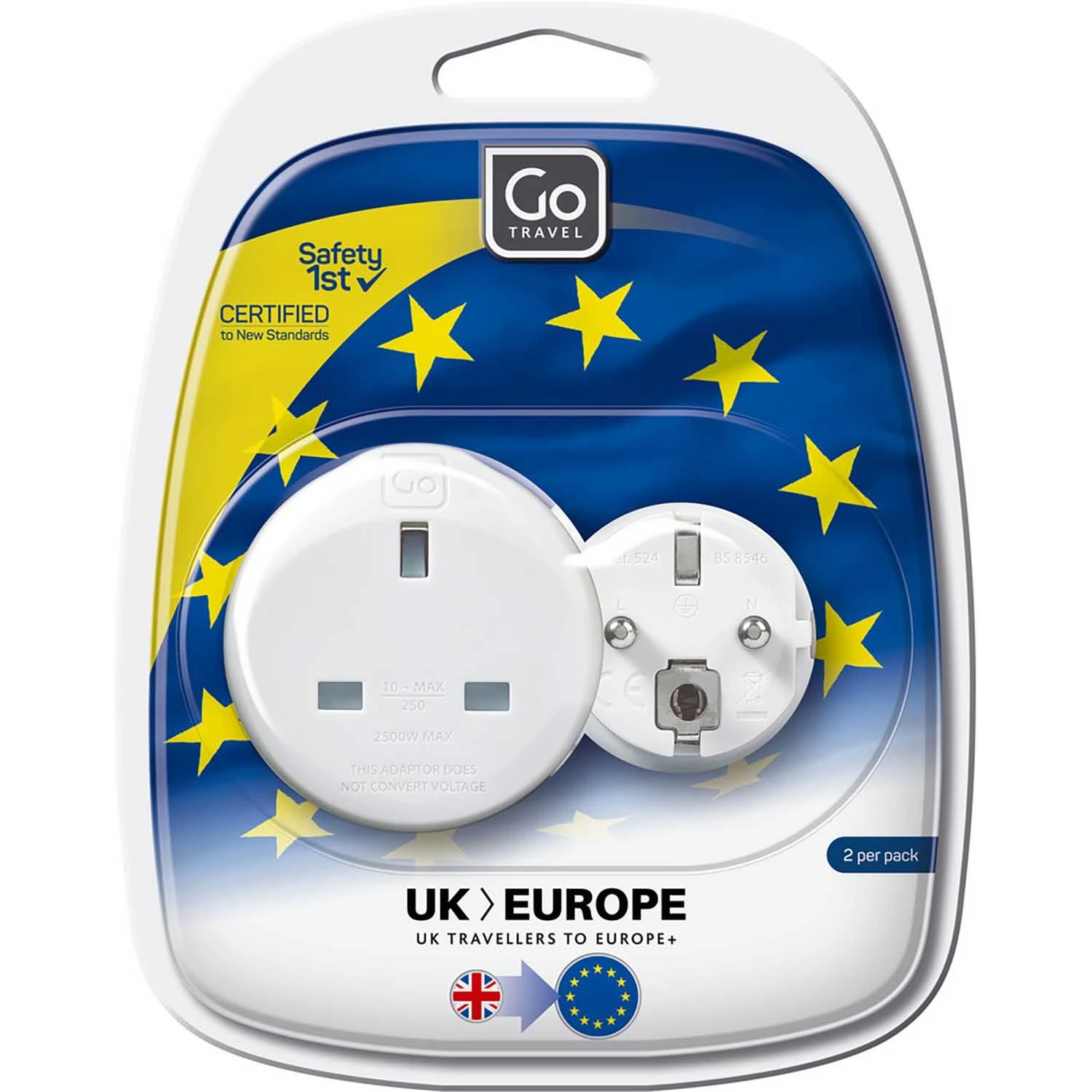 Designed for UK travellers visiting Europe, these travel adaptors convert British 3-pole earthed plugs to fit most European sockets.