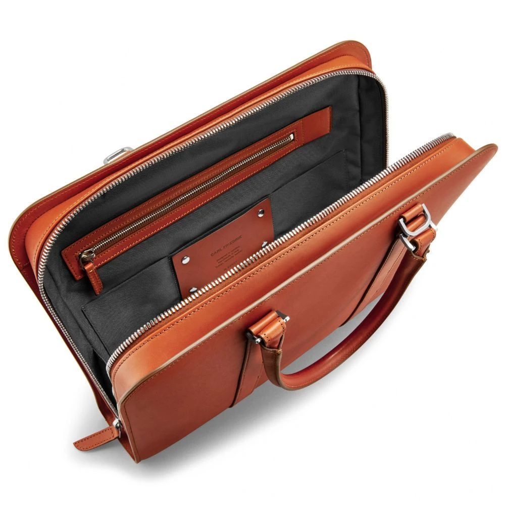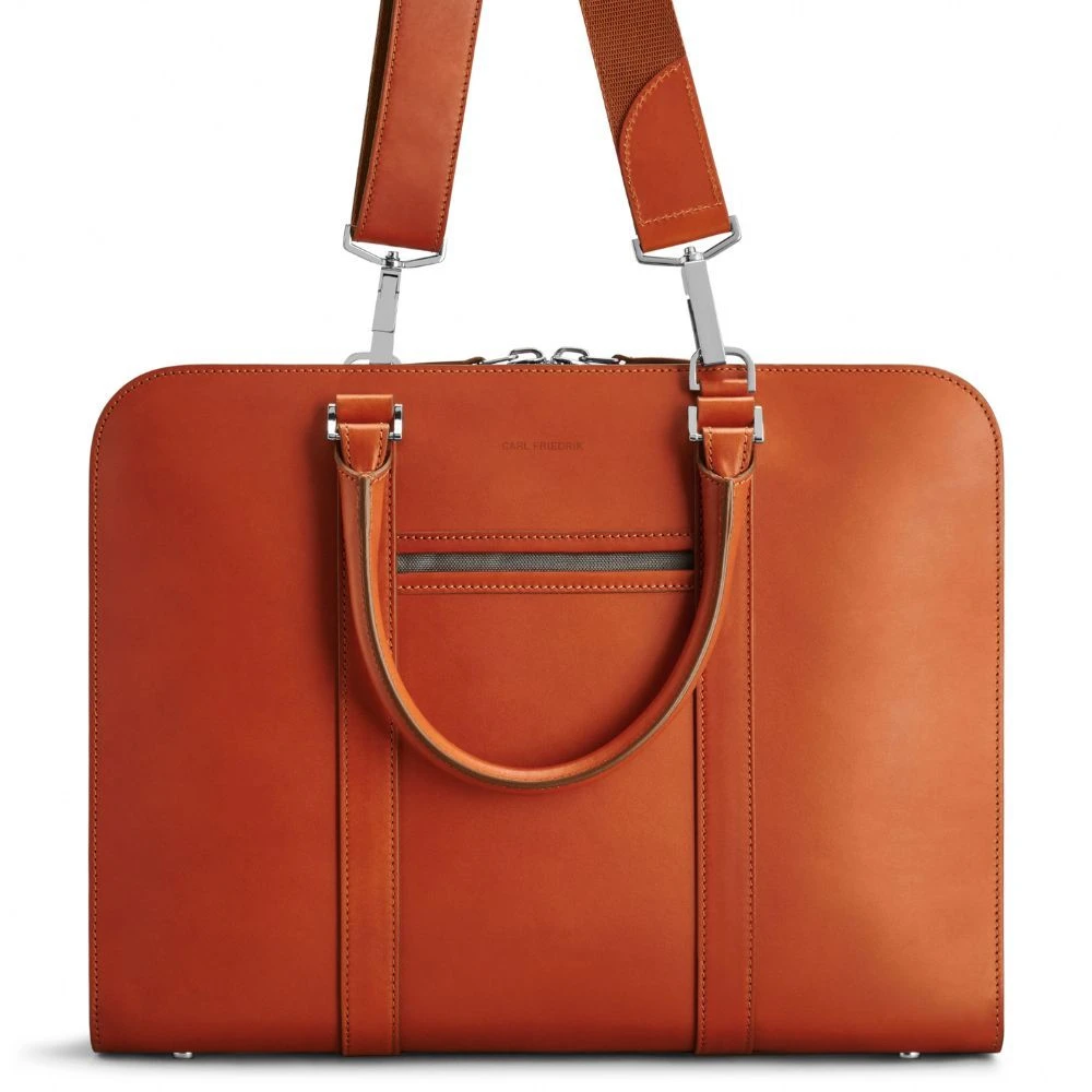 A contemporary case acting as a personal portfolio; an everyday companion for the modern gentleman. Fits a 15-inch Macbook (2016 and newer) or a laptop with the dimensions: 35 x 25 x 1.5cm or smaller in the dedicated laptop pocket. Fits a 16-inch Macbook in the main compartment.