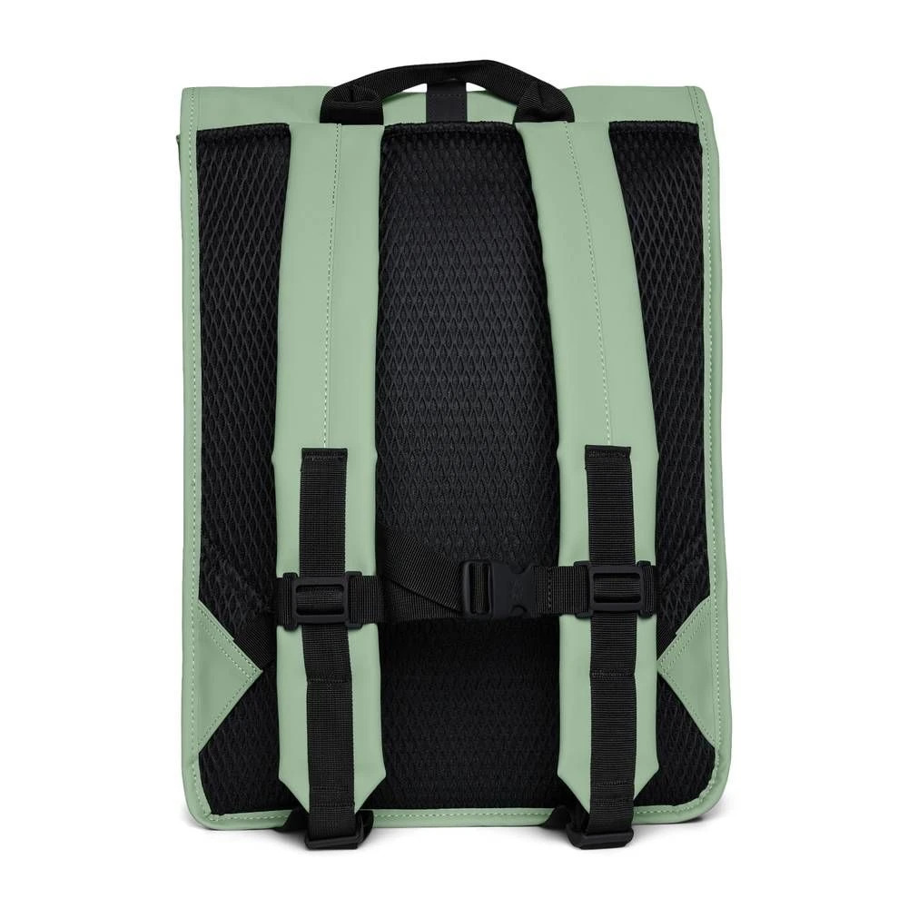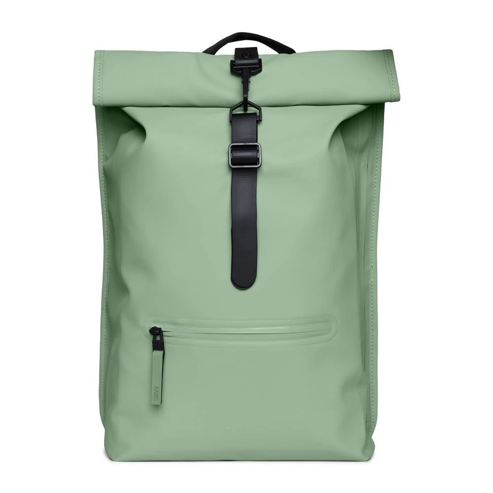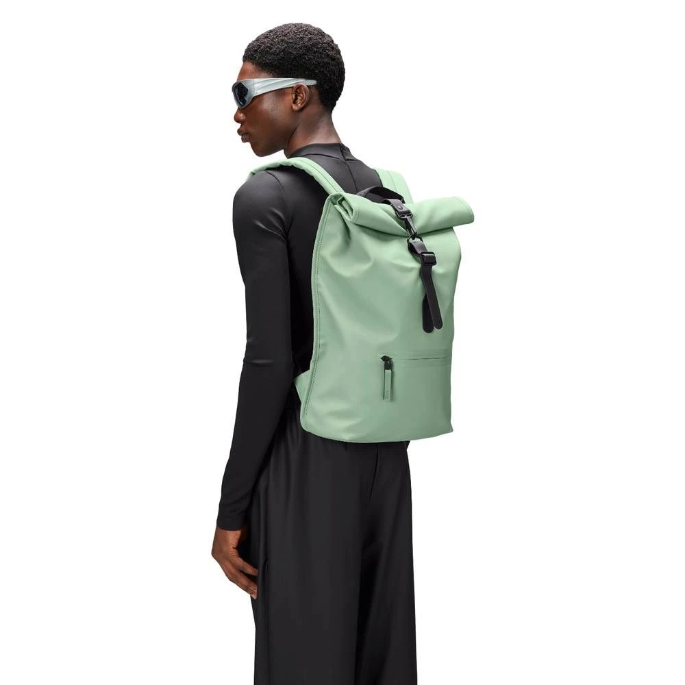 Rolltop Rucksack is cut in Rains’ signature waterproof PU fabric, engineered for carrying strength, durability, and a smooth feel.