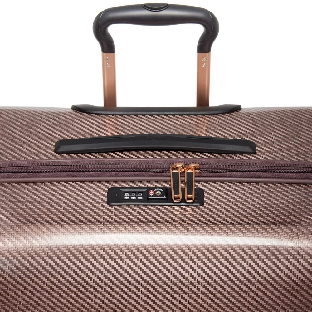 Tumi+ compatibility for enhanced functionality and a personalized packing experience. Compression straps to keep items in place while maximizing packing space. Zip mesh pocket. Fabric lining made of recycled materials.