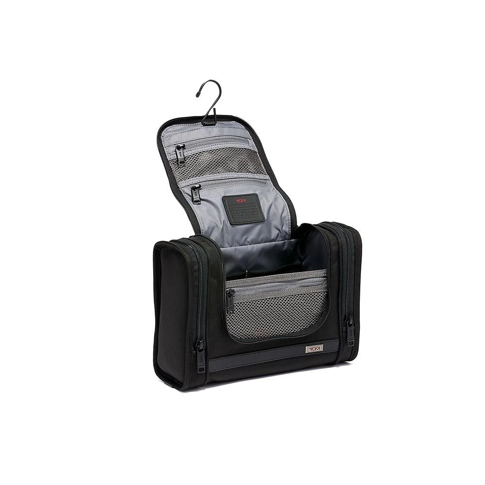 This versatile travel kit fits everything you need and keeps it well organized. Designed to hang from towel racks or sit on flat surfaces, it features an easy-access U-zip opening to the main compartment and two convenient exterior side-zip pockets, as well as an antibacterial lining.