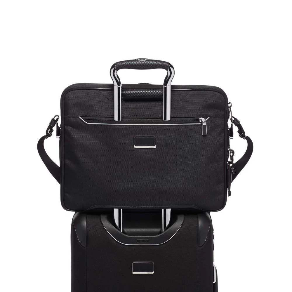 A sleek, modern style that’s also spacious, Tumi’s Hannover Slim Brief fits your laptop, papers, and other essential accessories.