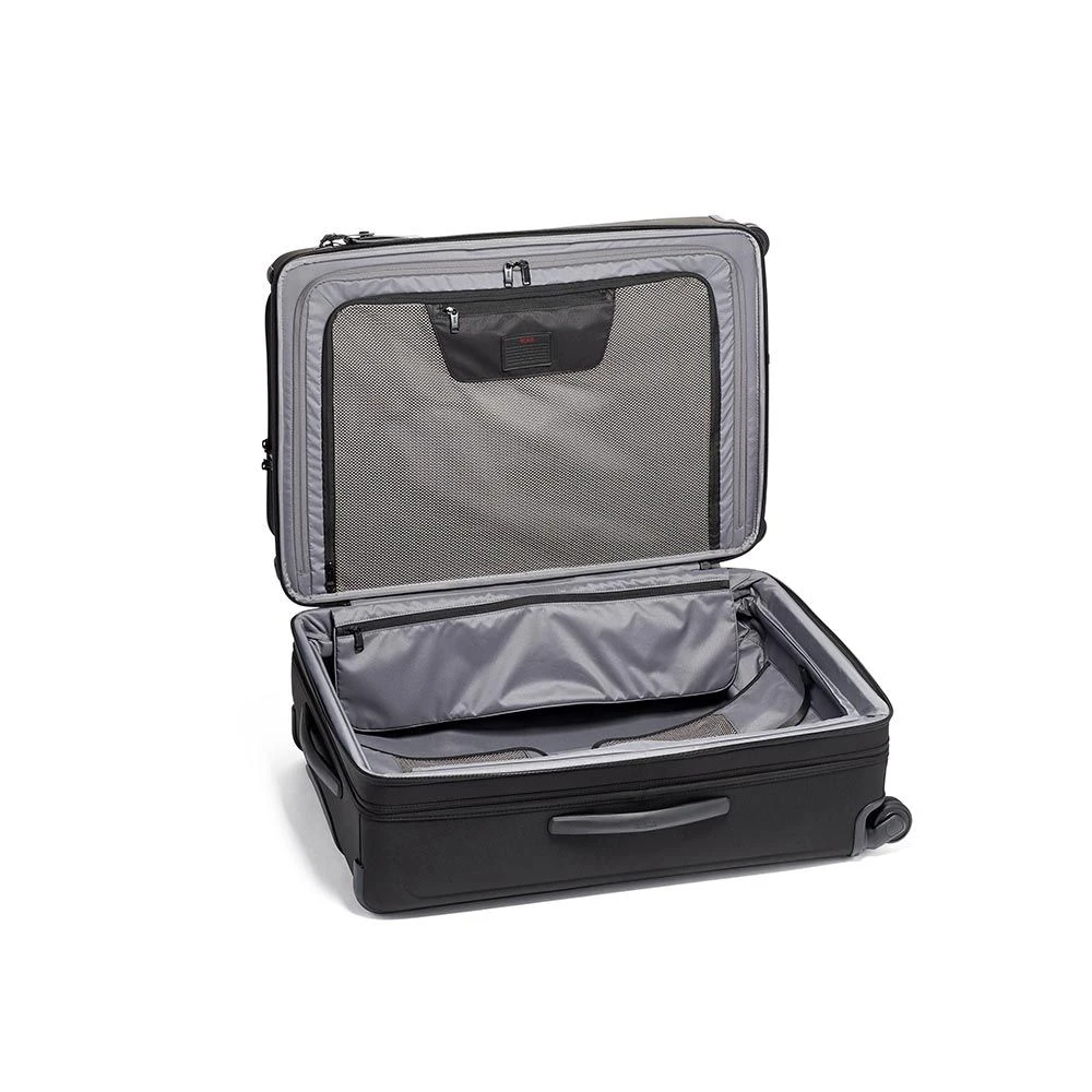 This roomy suitcase makes packing for longer trips a breeze. Main compartment features TUMI’s easy-to-use Lever Lock™ Expansion System that allows for up to 2″ (5 cm) of additional space. A removable garment sleeve accommodates one suit, and handy interior and exterior pockets keep essentials in order and easy to reach.